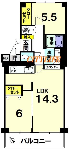 ※南西向きバルコニー