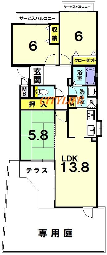 ※テラス・専用庭付