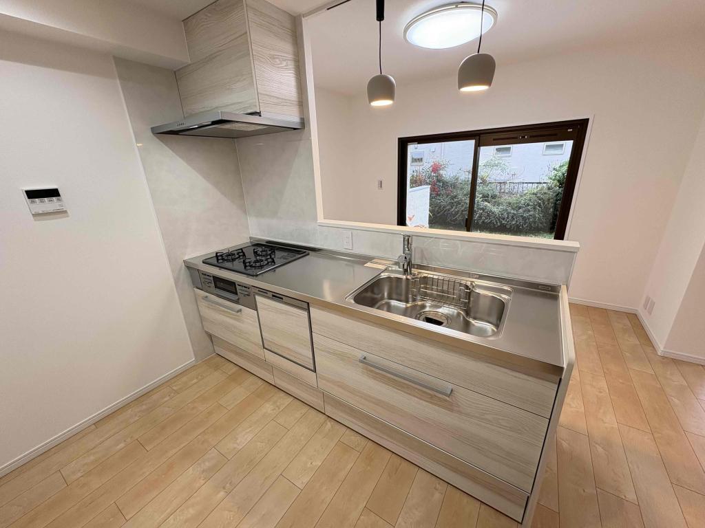 - バス・トイレ別,温水洗浄便座,洗濯機置き場,洗髪洗面化粧台 ,シャンプードレッサー,浴室に窓有,給湯,追い焚き,浴室暖房乾燥機,ガスコンロ,カウンター付キッチン,システムキッチン,食器洗浄乾燥機,全室収納有,TVドアホン,フローリング,専用庭,インターネット,バイク置き場あり,駐輪場あり,南向き