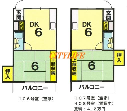 - ※106号室・107号室・408号室まとめての販売