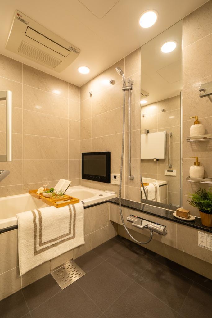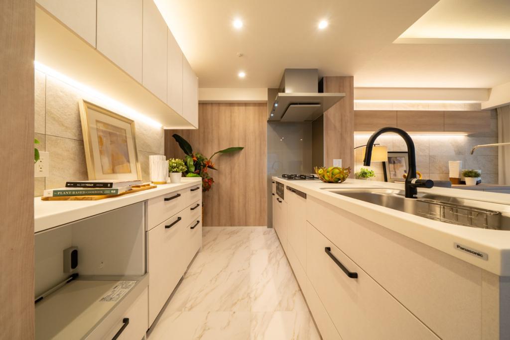 - バス・トイレ別,温水洗浄便座,洗濯機置き場,洗髪洗面化粧台 ,ミストサウナ,給湯,オートバス,追い焚き,浴室TV,浴室暖房乾燥機,ガスコンロ,カウンター付キッチン,対面式キッチン,システムキッチン,浄水器,食器洗浄乾燥機,ディスポーザー,シューズインクローゼット,TVドアホン,バリアフリー,フローリング,バルコニー,2面バルコニー,宅配ボックス,オートロック,床暖房,インターネット,バイク置き場あり,駐輪場あり,角部屋,南向き,24時間ゴミ出し,コンシェルジュサービス
