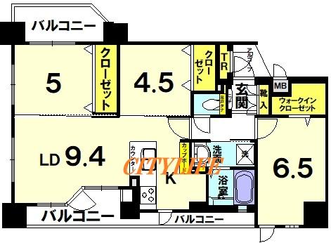 ※上層階・北西角部屋・二面バルコニー(東・西向き)