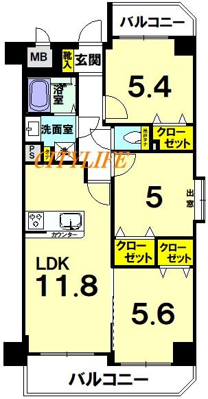 ※二面バルコニー(東・西向き)